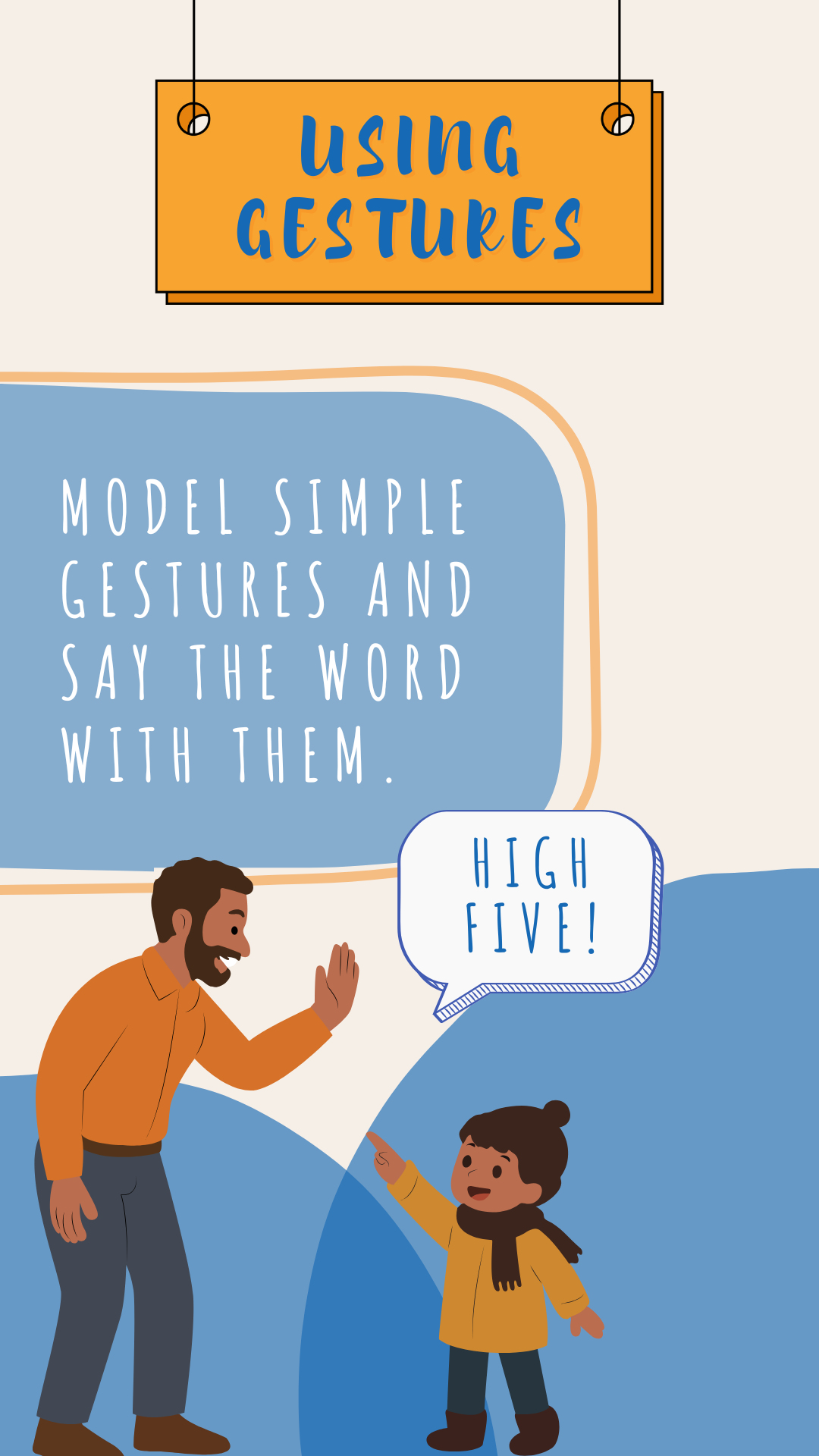 Nuestros pequeños a menudo se comunican con gestos antes de poder usar palabras. ¡Responde cuando tu hijo o hija use un gesto para reforzar que se está comunicando contigo! 🧡