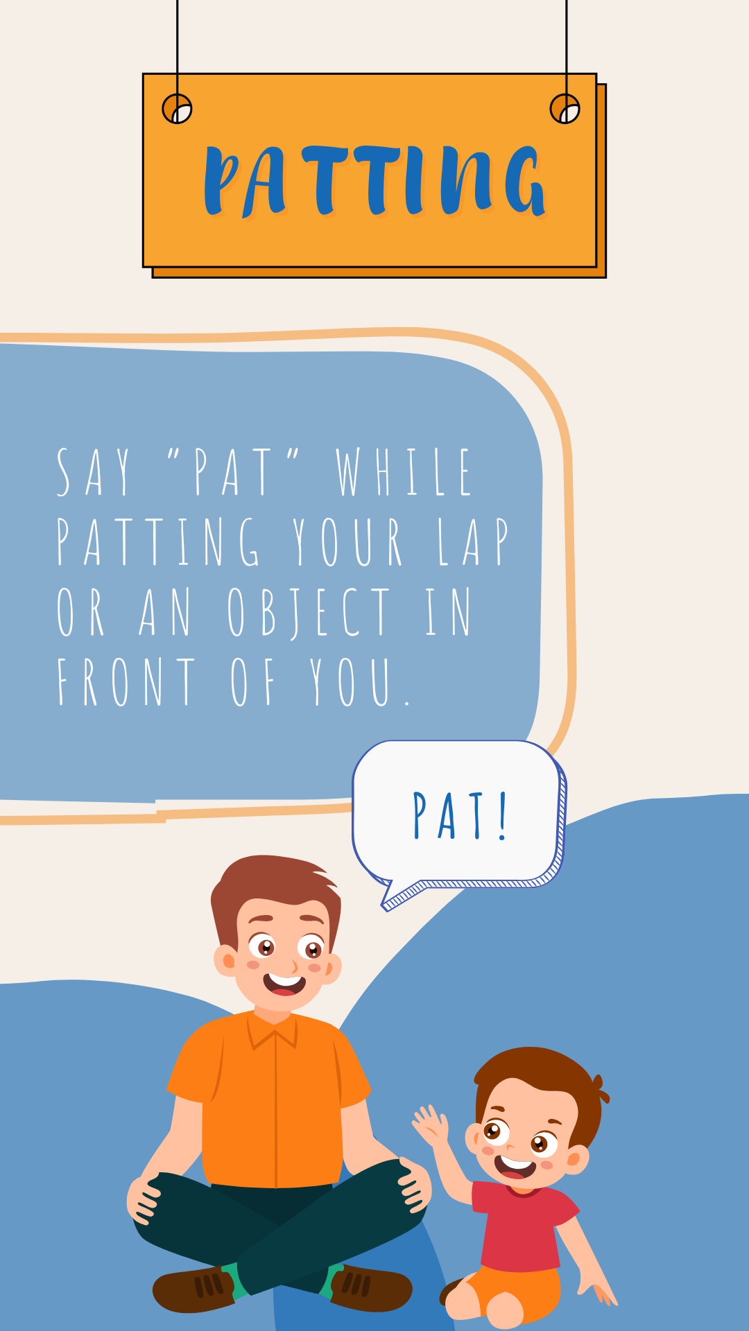Di “palmadita” mientras das palmaditas en tu regazo o en un objeto que tengas delante. ¡Palmadita!
