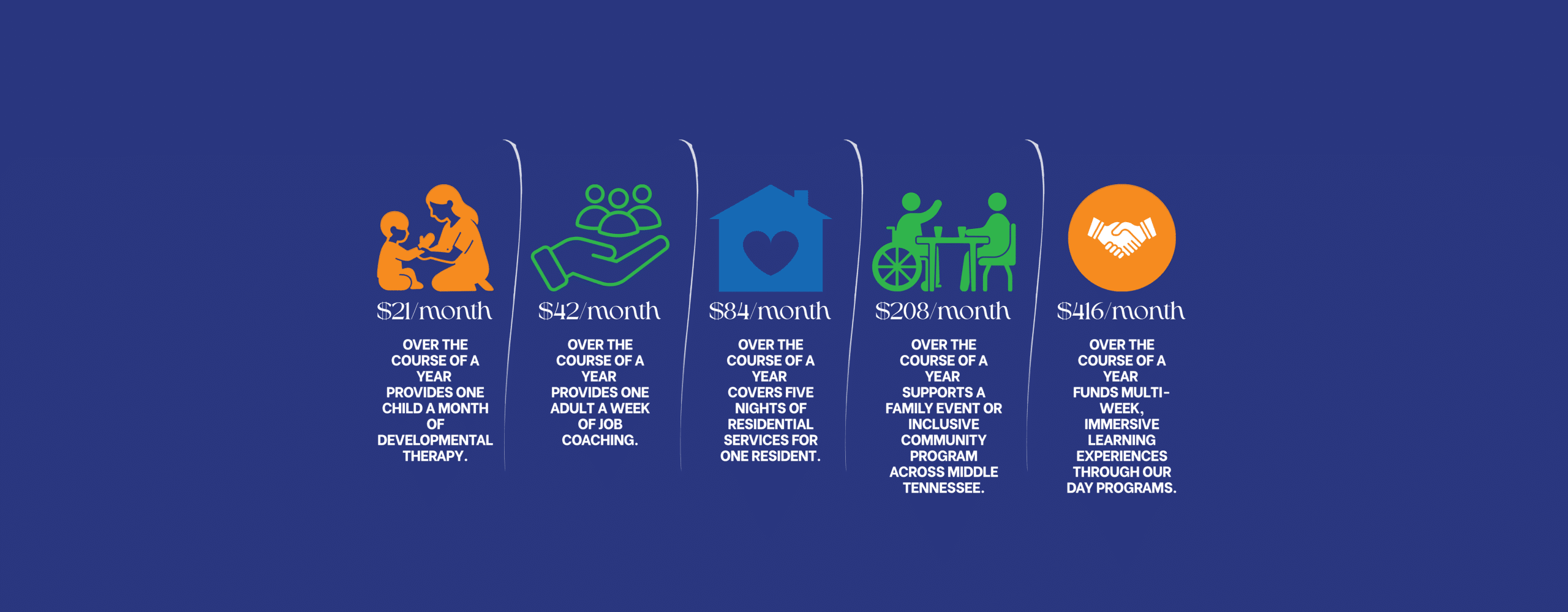 Your gift of $208 a month supports a family event or community partnership that promotes inclusion for children and adults with disabilities across Middle Tennessee.